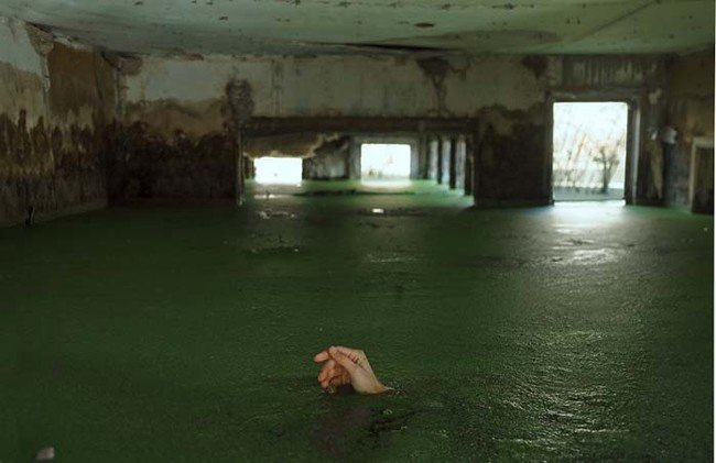A felvételek többsége beállított, megszerkesztett környezetben van fotózva, de a legmegindítóbb kompozíciókat egy valós, vízben álló elhagyatott városkában fényképezte Utah államban. Véletlenül akadt rá a helyre, miközben kempingezett. Az elhagyatott pajta, és az a kép, ahol az egész épület látszik, és csak egy kézfej kandikál ki a vízből mind ott készült. Maga a folyamat több hónapot vett igénybe, nyártól késő őszig, míg az idő hidegre nem fordult.