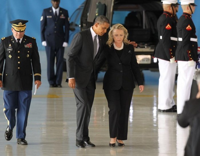 2012-ben megölt Líbia-i nagykövetségi dolgozók tetemének fogadása.