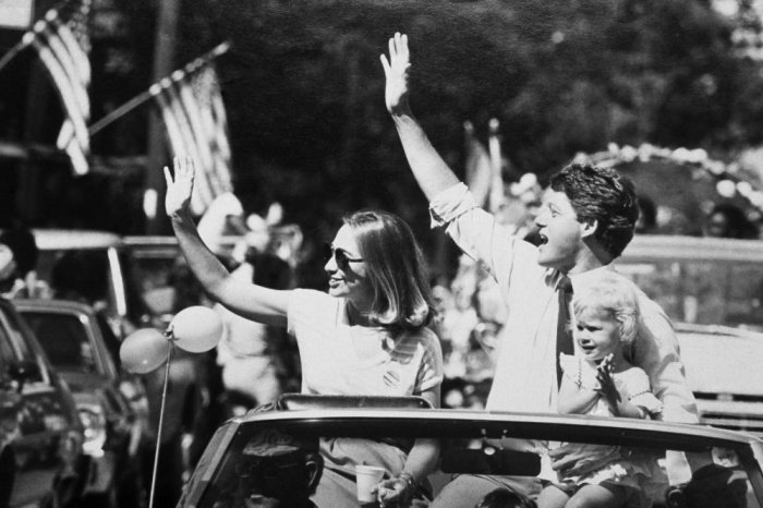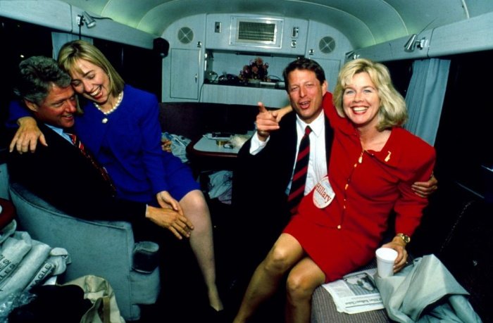 1992 – az elnöki kampány buszon Al Gore és felesége Tipper társaságában.
